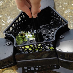 The cleaned surface water is returned to the pond via an injector . This also ensures oxygen enrichment in the pond. The collection basket can be easily removed for convenient maintenance.